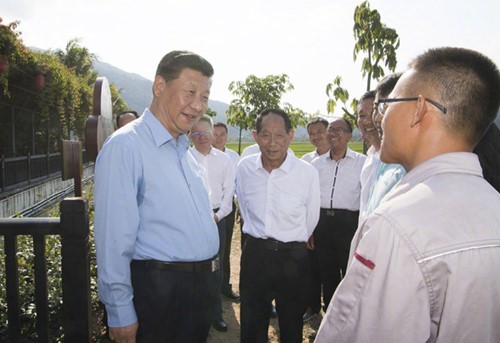 2015年7月16日下午,習近平來到了光東村。進村前,經過一大片水稻田時,總書記下車,沿著泥濘的田埂走進田里,同正在田間勞作的村民和農技人員攀談起來。