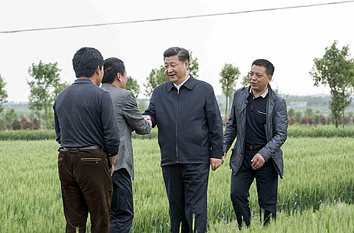 習近平在尉氏縣張市鎮高標準糧田察看小麥長勢。(圖片來源:新華視點)