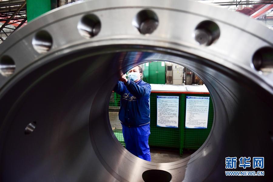 2020年2月10日,沈陽鼓風機集團股份有限公司工人在生產線上工作。新華社發(沈鼓集團提供)