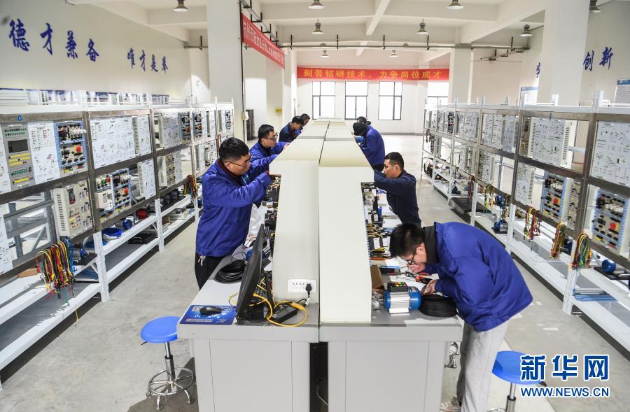 2020年12月6日,浙江省杭州市臨安區總工會組織的“工匠杯”電工技能大賽舉行。這是技術工人在參加電工技能比賽。新華社記者 徐昱 攝