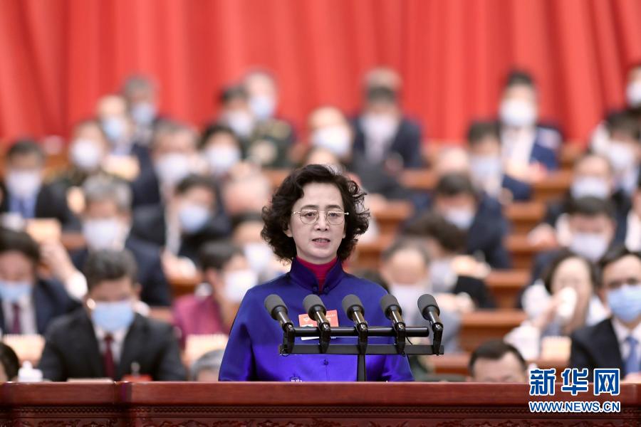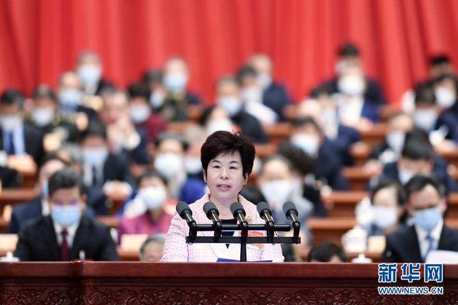 3月7日,全國政協十三屆四次會議在北京人民大會堂舉行第二次全體會議。這是韋震玲委員作大會發言。新華社記者 丁海濤 攝