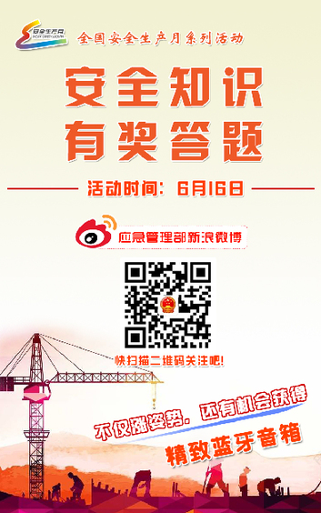 6月16日,應急管理部新浪微博賬號將圍繞有限空間、交通安全、礦山安全、危化品、生活安全、自然災害等生產生活中常見安全內容開展安全知識答題活動,提高應急避險和自救互救能力,參與活動還有機會獲得精美禮品。