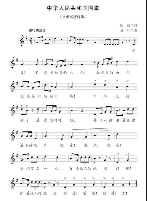 2004年3月14日,第十屆全國人大第二次會議通過了《中華人民共和國憲法修正案》,修正案第三十一條規定,憲法第一百三十六條增加一款,作為第二款:“中華人民共和國國歌是《義勇軍進行曲》。”2017年9月1日,《中華人民共和國國歌法》經十二屆全國人大常委會第二十九次會議表決通過,于2017年10月1日起施行。