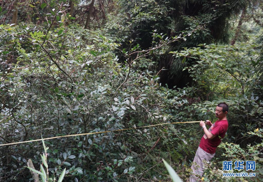 蔣維明在丈量茶樹(資料照片)。新華社發(fā)