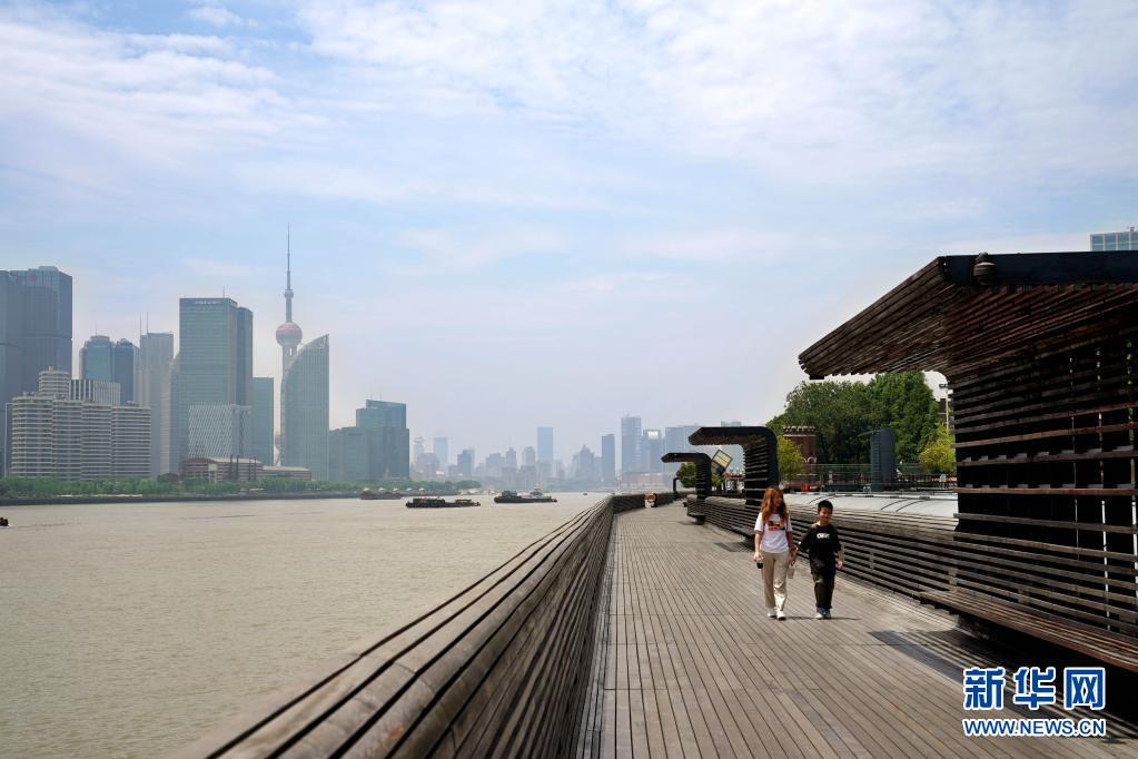 5月15日,市民在楊浦濱江公共空間休閑漫步。新華社記者 劉穎 攝
