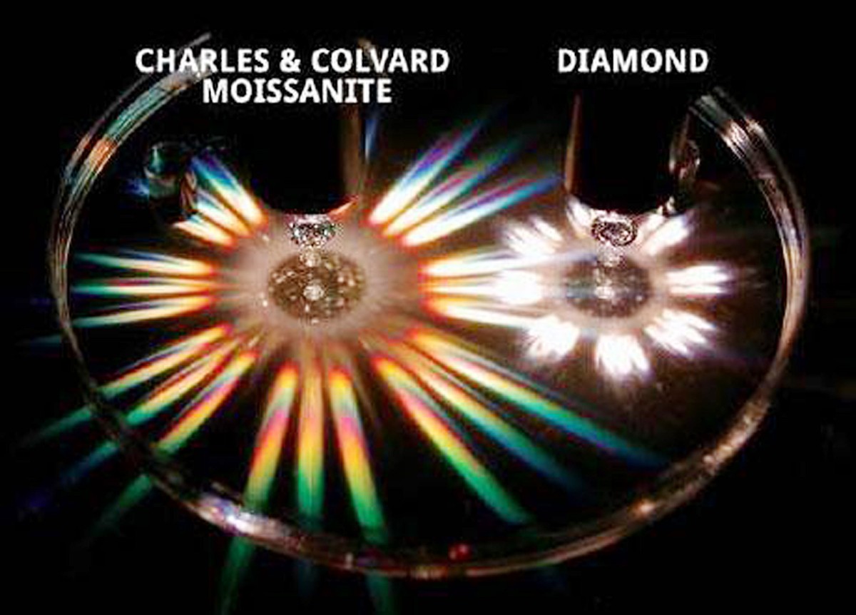 乍看之下,莫桑與鉆石無法分別,甚至連儀器也區分不出,但仔細看會發現莫桑的七彩火彩比鉆石更強。