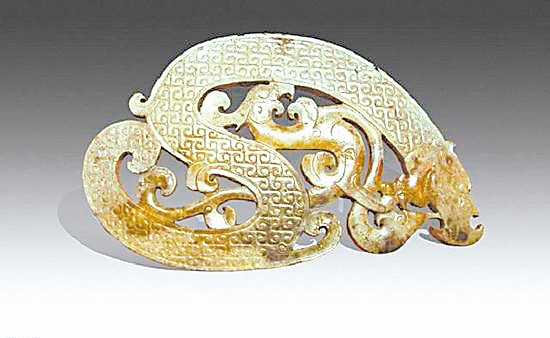 天然沁色玉器無論是從雕刻層次深淺和線條凹凸變化,其沁色均勻,即雕刻突出而有沁色,低凹面也有相同的沁色。但同一玉器因所埋土質中不同物質的侵蝕,會有不同顏色的沁色,沁色玉器表面往往有細微的質地上的腐蝕瘢痕和土斑,有的瘢痕大且深,甚至破壞原有的雕刻紋飾。