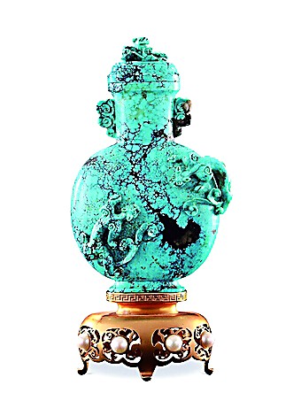 其次要注意完整性。綠松石的完整性越好,價值就越高,保值升值的潛力也就越大。如果有明顯的缺陷,包括天然的瑕疵和人為的劃痕、磕碰等,則會影響其價值。再次要注意雕工。設計合理、雕工精湛的雕件往往比素料價值高,如果又是出于某位名家之手,則更具升值潛力。