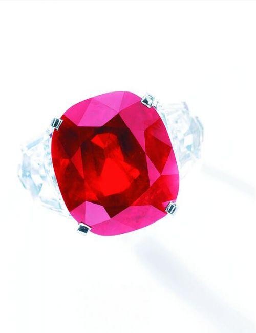 緬甸紅寶石的天然結晶小,因而很難有大克拉產出,3克拉起步的緬甸鴿血紅就可步入收藏級了,5克拉以上的緬甸鴿血紅已是非常罕見。近10年來,隨著緬甸礦源逐漸挖掘殆盡,收藏級別的大克拉紅寶石在拍場上的克拉成交單價可與頂級彩鉆相媲美。在2015年春拍中,蘇富比推出的一顆25.59克拉緬甸紅寶石,在日內瓦以3052萬美元(約合人民幣1.88億元)的價格成交,刷新了紅寶石的世界拍賣紀錄。而到了秋季拍賣時,一枚緬甸“鴿血紅”紅寶石在香港佳士得拍場亮相,最終以1.42億港元成交,刷新了紅寶石單克拉的世界拍賣紀錄。