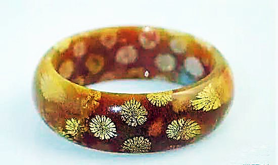 珊瑚玉主要分為紅珊瑚玉和黑珊瑚玉兩種,另外還有白珊瑚和黃珊瑚,其中的紅珊瑚玉最為珍貴。俗稱(chēng)的菊花玉系單束珊瑚群受玉髓化作用而形成,橫切后常呈現(xiàn)規(guī)則菊花狀,因古代珊瑚的大小品種不同而有各種圖樣,疏密分布錯(cuò)落有致,其顏色也甚多。