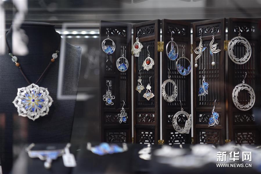 這是6月10日在道安銀花絲工作室內拍攝的銀花絲首飾。新華社發(胥冰潔攝)