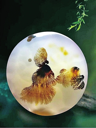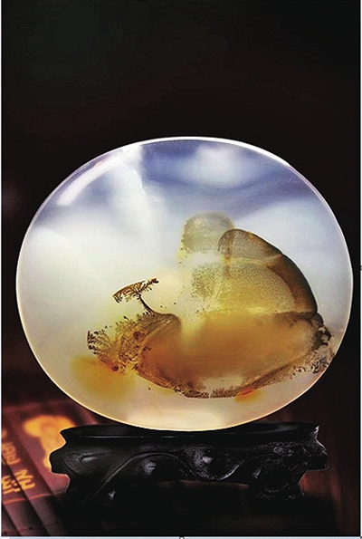 海洋玉髓因溫潤、通透的質地常用于打造珠寶首飾,也因豐富的色彩、花紋、圖案被廣泛用于奇石收藏。(薛潔 收藏)