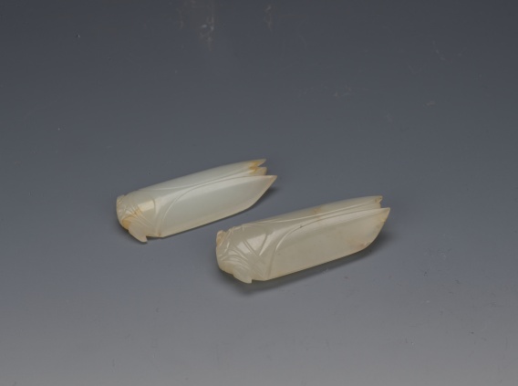 漢·白玉蟬。大蟬長6.2厘米,寬2.9厘米;小蟬長5.8厘米,寬2.7厘米。