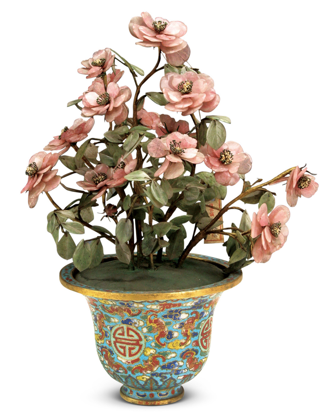 沈陽故宮博物院:清掐絲琺瑯玉石月季盆景