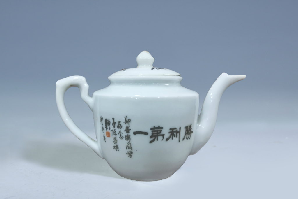 廈門紅色文物:1940年德化窯“勝利第一”題款瓷茶壺