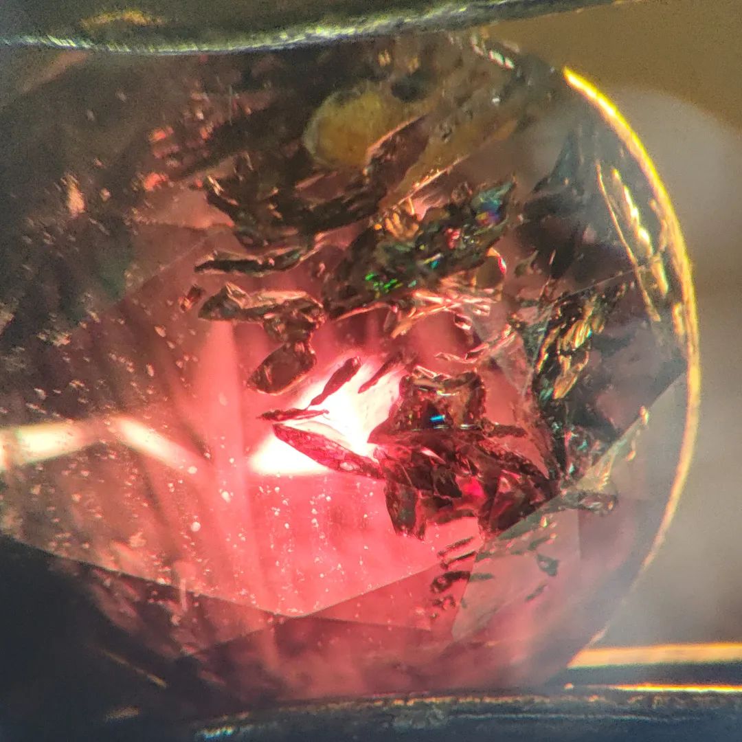 答:該現(xiàn)象稱為“蛛網(wǎng)效應(yīng)”,是擴散處理的典型鑒定特征,由于致色劑在棱線富集導(dǎo)致的結(jié)果。