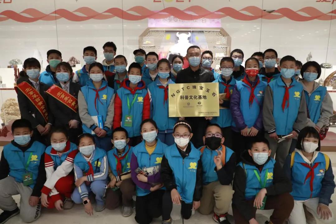 珠寶國檢(NGTC)培訓(xùn)部專家與參加珠寶科普文化基地——北京菜百黃金珠寶博物館活動的小朋友合影