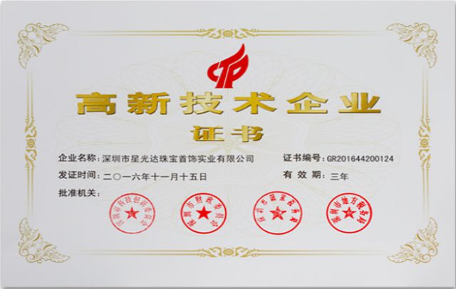 星光達珠寶不僅得到廣大合作伙伴的廣泛認可,也受到了政府、協會及社會的綜合深度肯定,獲得了諸多榮譽與獎項:“中國珠寶鑲嵌第一家”、國家高新技術企業、全國百佳質量誠信標桿示范企業、全國產品和服務質量誠信示范企業、“廣東省工業設計中心”“JNA年度創新-可持續發展企業大獎”“JNA年度制造商大獎”等多項榮譽。