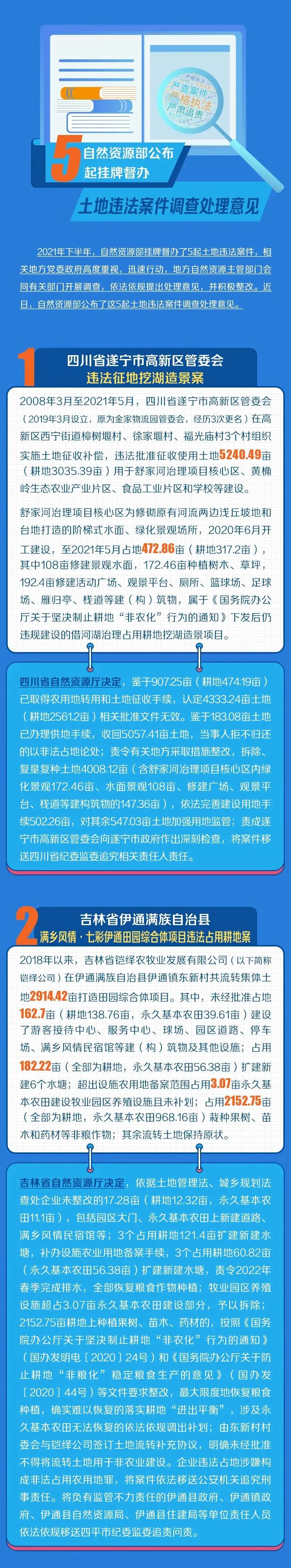 自然資源部公布5起掛牌督辦土地違法案件調查處理意見