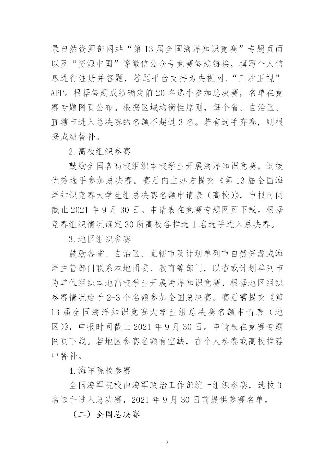 自然資源部辦公廳 共青團中央辦公廳 海軍政治工作部宣傳局關于開展第13屆全國海洋知識競賽活動的通知
