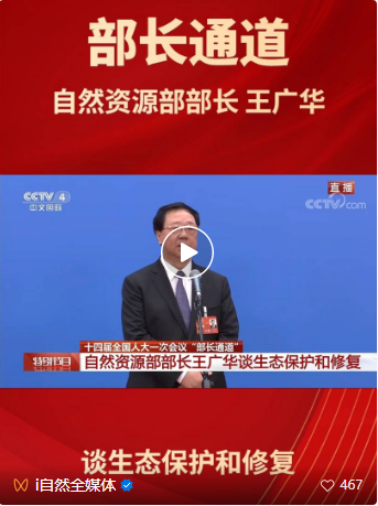 自然資源部部長王廣華在全國兩會“部長通道”答記者問