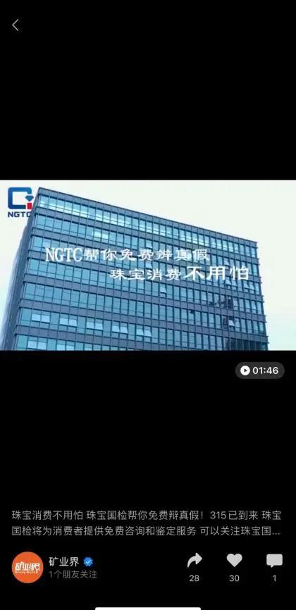 珠寶國檢(NGTC)助你維權系列報道(十二)丨“3.15NGTC在行動·助你維權”視頻短片登錄中國礦業報—礦業界視頻號