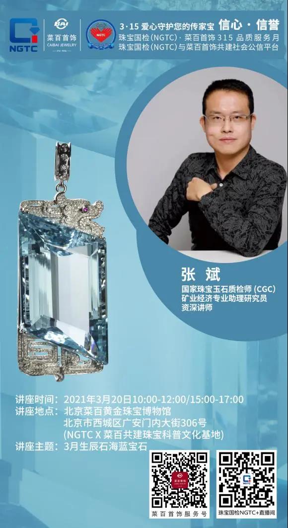 珠寶國檢(NGTC)與菜百共建社會公信平臺專為少兒科普開辟的“珠寶國檢(NGTC)與菜百科普文化基地”,將在2021年3月20日,春分節氣,迎著明媚的春光,與北京的小朋友們相約菜百。NGTC國檢珠寶培訓中心資深講師、商學院副院長張斌在菜百總店將以珠寶國檢(NGTC)權威的科研、檢測、教育成果為基礎,為近百位北京師生家長帶來寶石礦物學科普講座——3月生辰石·海藍寶石。精彩內容涵蓋如下: