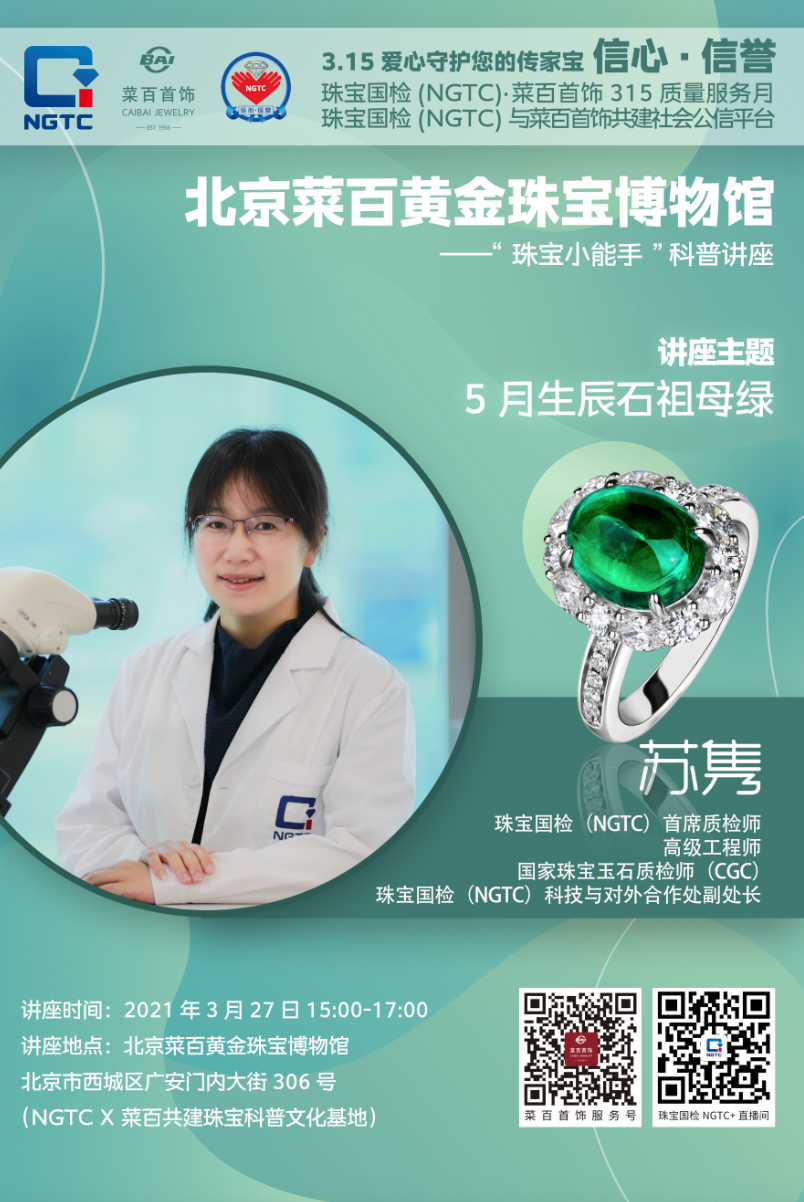 講座專家:珠寶國檢(NGTC)首席質檢師、高級工程師、珠寶國檢(NGTC)科外處副主任蘇雋