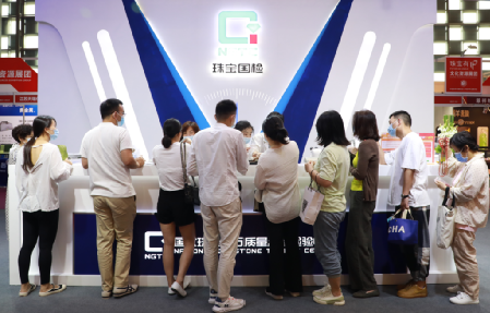 6月26日是上海國際珠寶首飾展覽會(以下簡稱上海展)開展的第三天。恰逢周末,自然資源部珠寶玉石首飾管理中心(國家珠寶玉石質量監督檢驗中心)(NGTC)【以下簡稱珠寶國檢(NGTC)】展位(展位號:1C01-1C12)迎來人潮高峰,消費者紛紛拿著準備購買的珠寶玉石首飾產品前來免費檢測、咨詢。