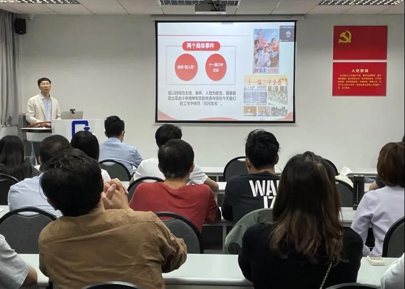 10月18日,珠寶國檢(NGTC)廣州實驗室黨支部組織委員陶震東同志以“傳承革命精神,發(fā)揚優(yōu)良作風”為主題,講了一堂生動的黨課。陶震東同志以習近平總書記講話內容為切入點,運用《歷史轉折中的鄧小平》片段內容,引導大家深入體會歷史背景和嚴酷斗爭現(xiàn)實。