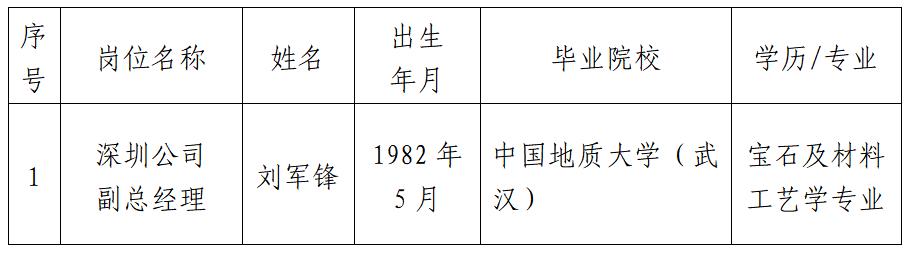 按照國家珠寶玉石首飾檢驗集團(tuán)有限公司招聘工作方案要求,經(jīng)過發(fā)布招聘公告、資格審查、面試、體檢等程序,經(jīng)黨委會議研究,擬聘用劉軍鋒同志為深圳公司副總經(jīng)理,現(xiàn)予以公示。