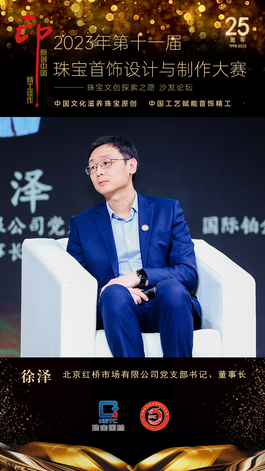在“珠寶文創探索之路”沙發論壇上,北京紅橋市場有限公司黨支部書記、董事長徐澤提出:紅橋市場一直在做文商旅融合發展的工作,比較知名的兩個特點,一個是珍珠,非常契合“印·大賽”的珠寶的主題,另一個就是紅橋市場是外事接待單位。紅橋市場是對外文化交流的商業窗口,今年接待了111個國家的高端政要,絕大部分都是女性消費者,購買的多是珠寶和首飾產品,他們特別喜愛設計款的設計師文創作品。