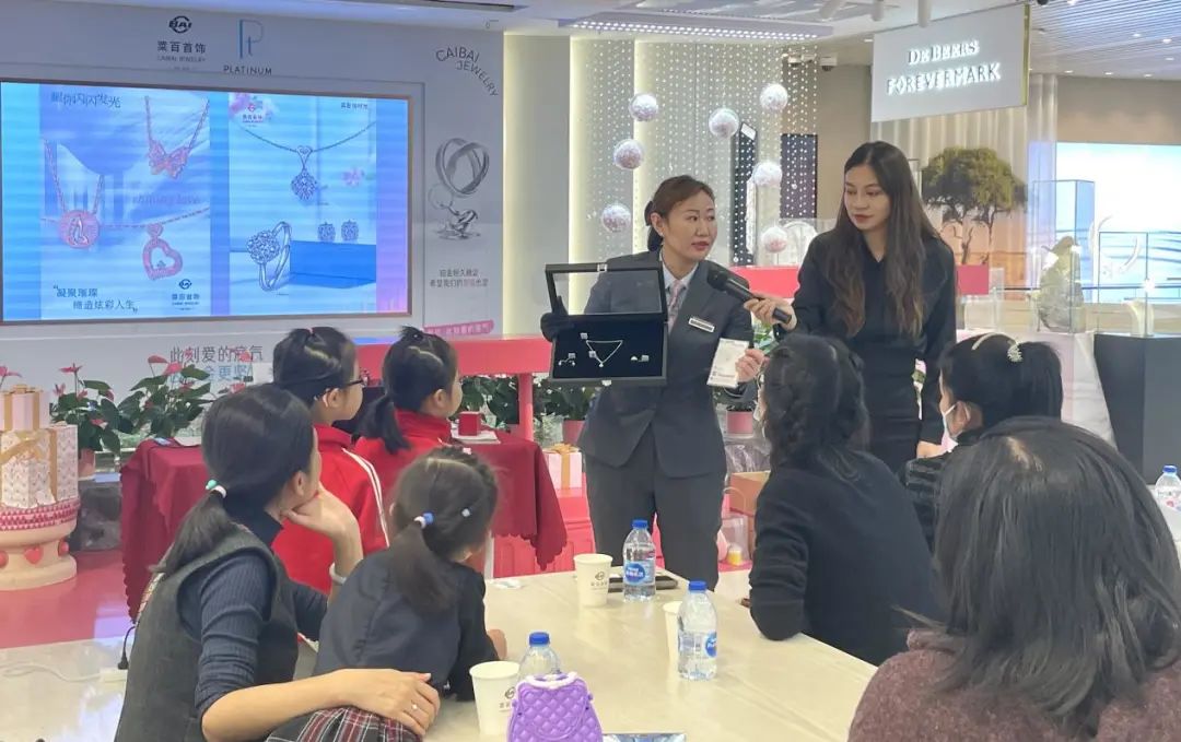 11月19日下午,以“愛意不止——天然鉆石鑒賞與手繪沙龍”為主題的2023年珠寶國檢社會公信平臺系列科普直播第23場活動在菜百首飾旗艦店舉辦。