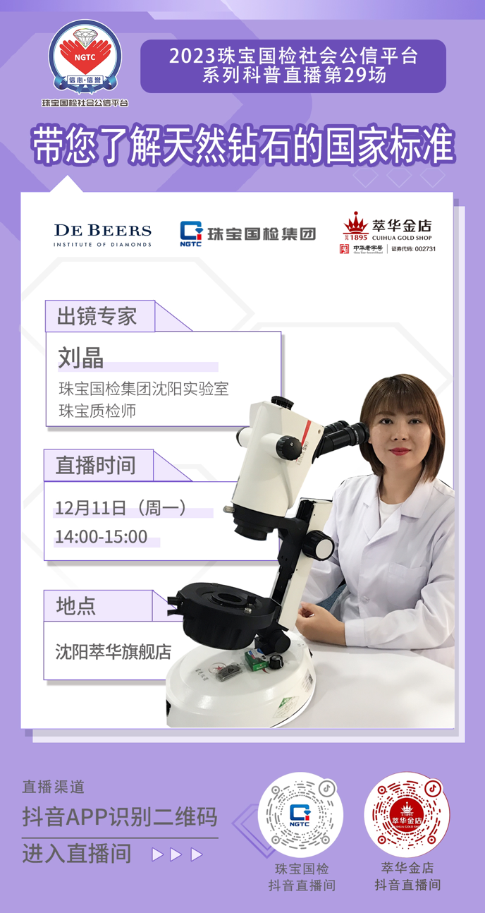 【2023珠寶國檢社會公信平臺系列科普直播第二十九場】直播預熱:帶您了解天然鉆石的國家標準