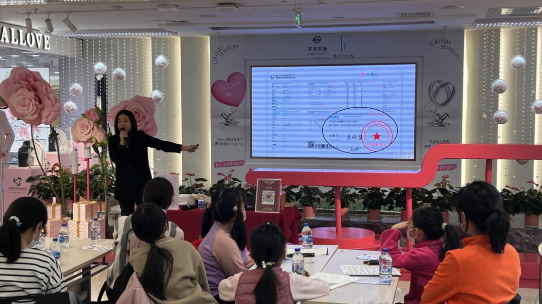 12月10日,珠寶國檢集團攜手戴比爾斯集團,聯合菜百首飾,開啟了2023珠寶國檢社會公信平臺系列科普直播的第28場活動。本場活動采用線上線下相結合的形式,讓消費者有機會通過手繪、填色、手工粘貼等方式沉浸式感受天然鉆石之美,增強在天然鉆石琢形、色彩、切工、設計等方面的認知,提升鉆石文化消費信心。