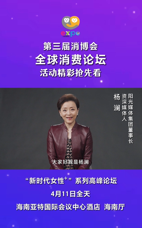 資深媒體人、陽光媒體集團董事長楊瀾:“新時代女性+”系列高峰論壇將探討品牌建設、創新營銷、產品創意等女性創業和消費的熱點