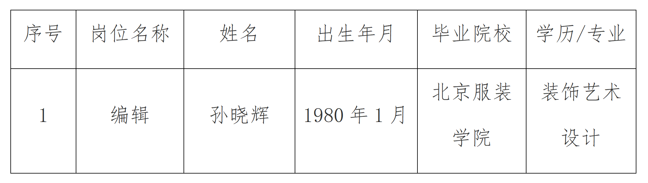 按照珠寶玉石首飾國檢集團北京文化有限公司(原北京國臻文化傳播有限公司)招聘工作方案要求,經過發布招聘公告、資格審查、面試、體檢等程序,經研究,擬聘用孫曉輝同志為公司工作人員,現予以公示。