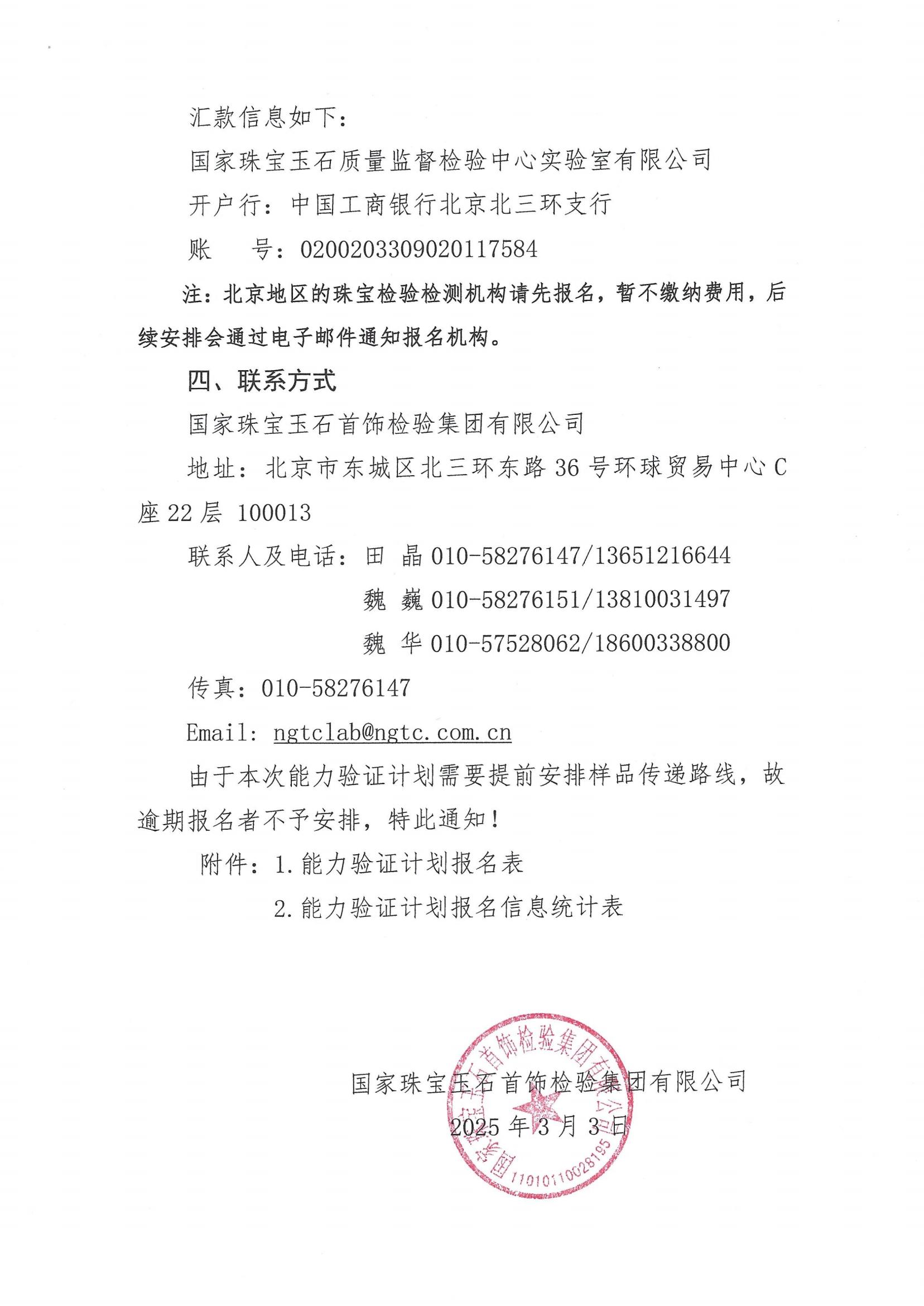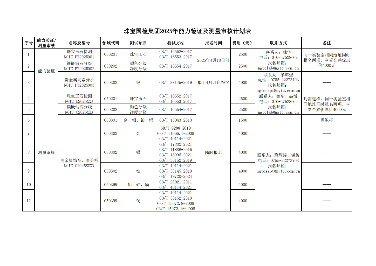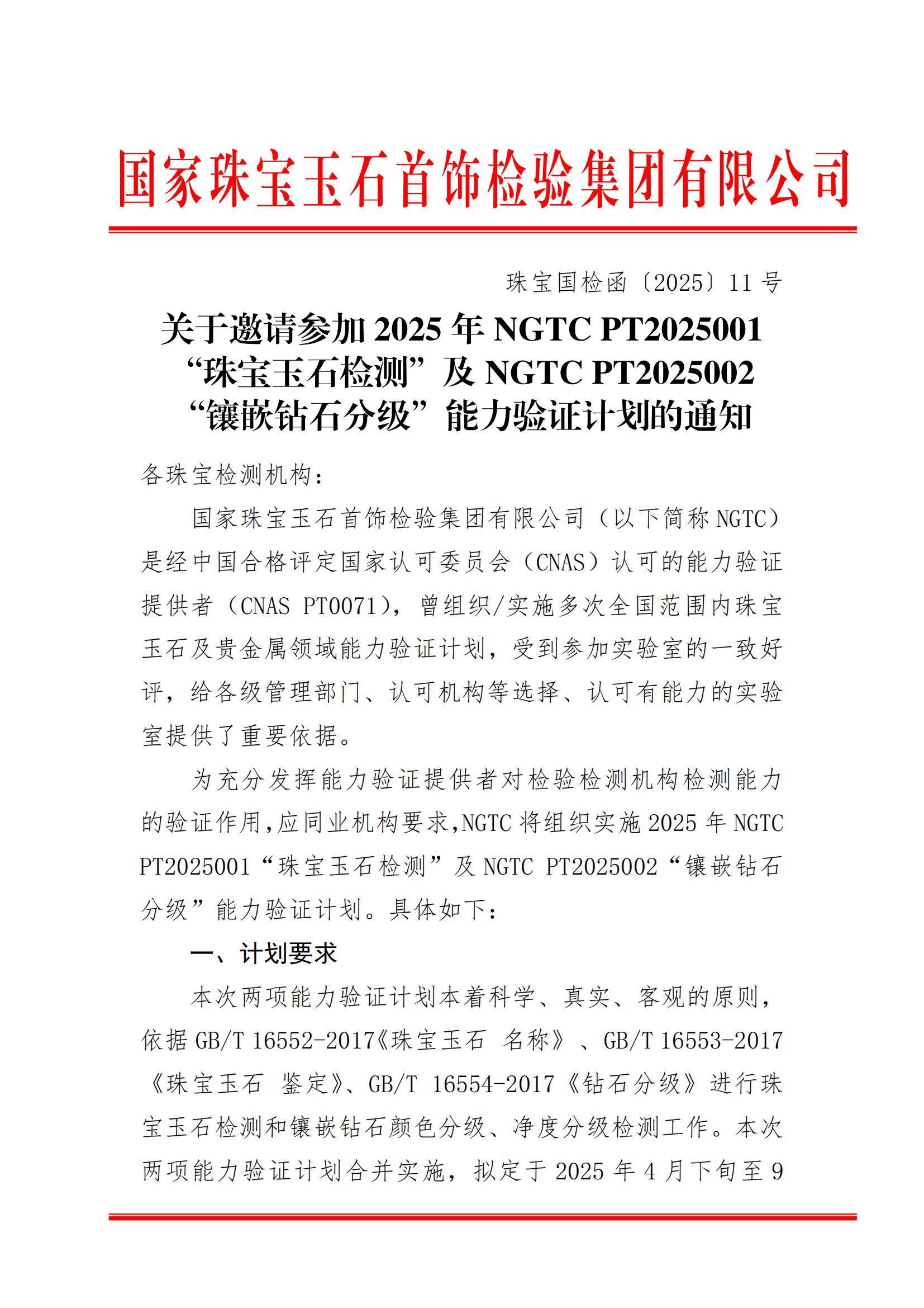 關于邀請參加 2025 年 NGTC PT2025001“珠寶玉石檢測”及 NGTC PT2025002“鑲嵌鉆石分級”能力驗證計劃的通知