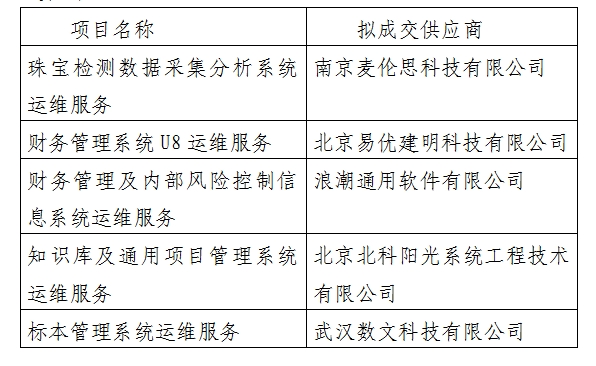 根據《國家珠寶玉石首飾檢驗集團有限公司采購管理辦法(修訂版)》相關規定,現就5項系統運維服務項目擬采用非競爭性采購方式的有關事項公示如下: