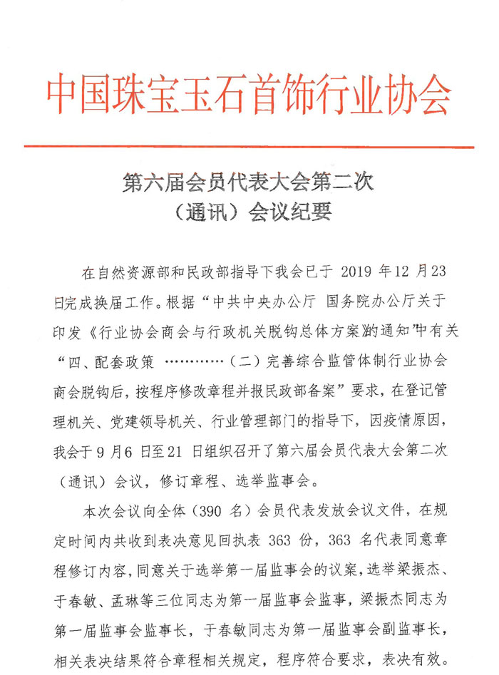 第六屆會(huì)員代表大會(huì)第二次(通訊)會(huì)議紀(jì)要