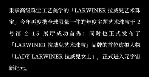 LARWINER拉威兒藝術(shù)珠寶再度驚艷亮相消博會(huì)LARWINER拉威兒藝術(shù)珠寶再度驚艷亮相消博會(huì)