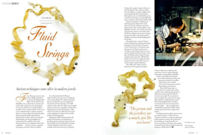 國外很多媒體對這個系列的作品特別感興趣,大家也在探討什么是新時代的奢侈品,其實它不僅僅是材料的名貴,還要有地域的文化特征,以及把各地域的傳統文明轉化成現代文明的設計手法。在整個系列作品的制作過程中,我也考慮了珍珠和人之間的搭配關系。因為珍珠本身并不像有些寶石那么搶眼,它很溫潤、很柔和,所以其實它自己本身有很好的保護屬性,能夠幫助形成非常好的人與自然之間的鏈接關系。