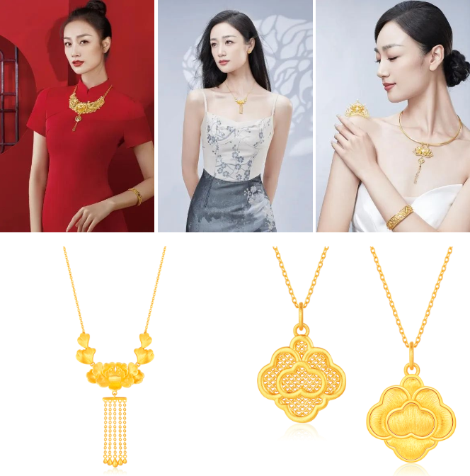 隨著文化自信的崛起,“國潮熱”蔚然成風,成為了無數人表達自我、彰顯自信的選擇。“中國珠寶”品牌站在中華文化的“巨人之肩”上,不斷汲取中式美學元素,以現代社會審美風尚賦予其創新表達,打造國潮時尚古法黃金飾品“美好金”系列,以金贊美、全新演繹國潮風尚。