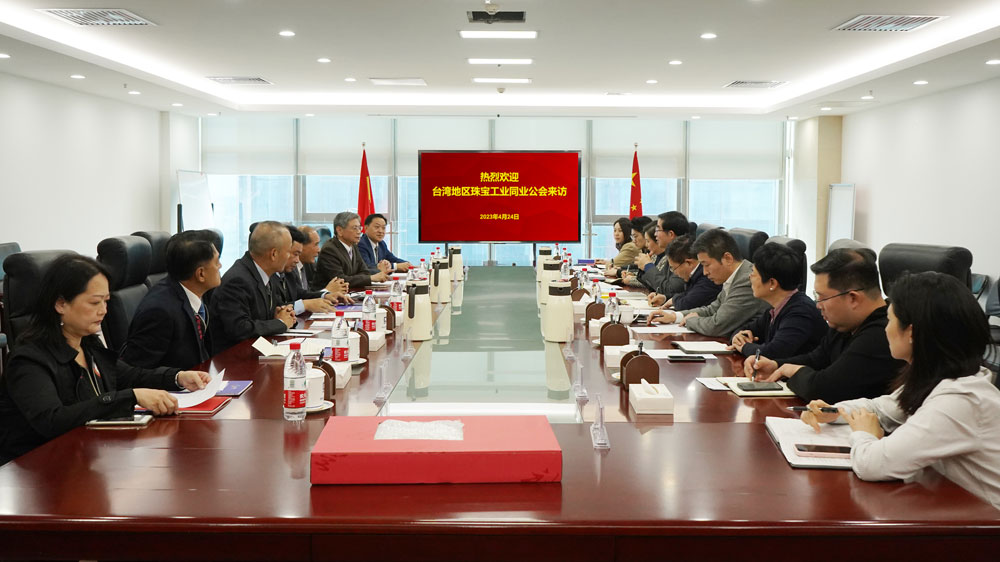 4月24日,中國臺灣地區珠寶工業同業公會理事長曾進財一行到訪中國珠寶玉石首飾行業協會(以下簡稱:“中寶協”),雙方就進一步深化合作進行座談交流。中寶協會長、珠寶玉石首飾國檢集團黨委書記、董事長葉志斌,中寶協副會長、秘書長畢立君,中寶協副秘書長王壯利,中寶協副秘書長、海南辦事處主任張麗葵等出席座談會。